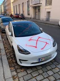 Protestors are drawing swastikas on cars. See here, here, and here. Apparently, this is being done in an effort to fight Nazis.